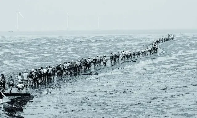 “在我从事摄影的40多年里,我看海,听海,赶海,拍海,从海里来,到海里去,潮涨潮落,一次次与大海拥抱,利用相机记录了围垦人的惊天壮举,记录了围垦工艺的变迁,每个画面就是一个故事。”李建淮回忆道。