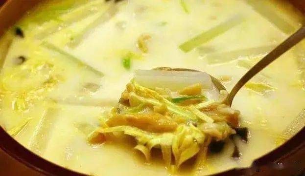 栟茶蛏汤,因乳汤之中蛏肉似嫩玉隐现,现在更有了一个文艺范的名字“贵妃出浴”,让人一看菜名就想探究一番。